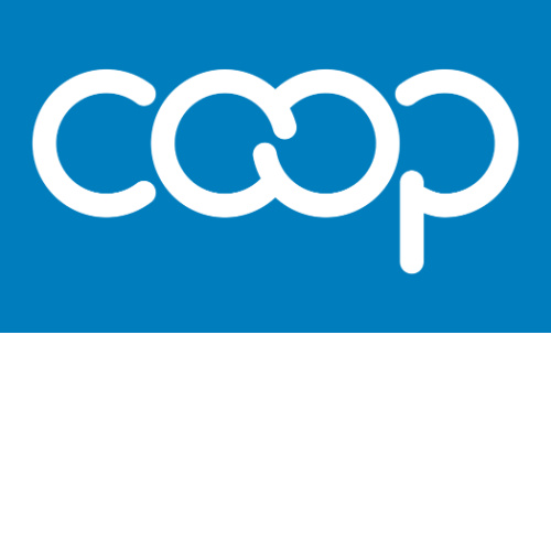 36″ x 60″ Co-op logo flag, white logo on a light blue background.