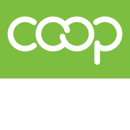 36″ x 60″ Co-op logo flag, white logo on a lime background.
