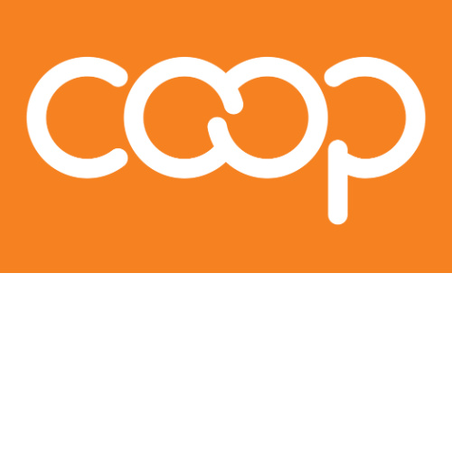36″ x 60″ Co-op logo flag, white logo on an orange background.