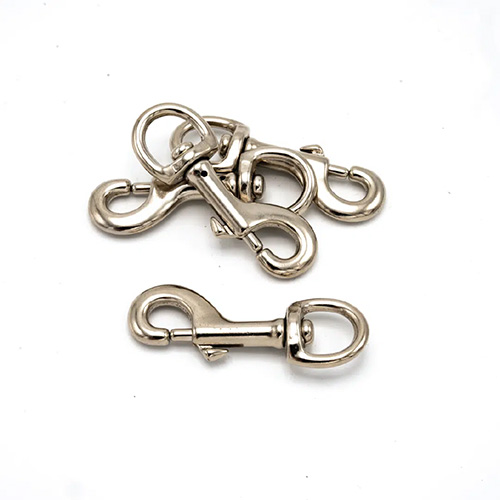 Nickel-plated swivel snap hook providing strength, corrosion resistance, and smooth flag rotation.