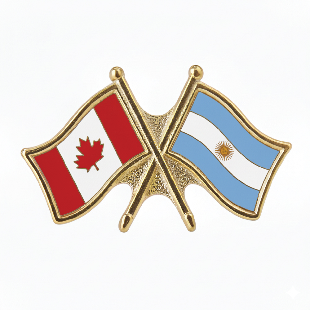 Our Canada / Argentina crossed flag pins (also known as friendship pins) are high quality, with butterfly clasp.