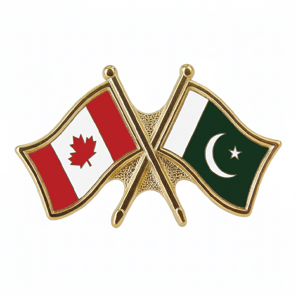 Our Canada/ Pakistan crossed flag pins (also known as friendship pins) are high quality, with butterfly clasp.