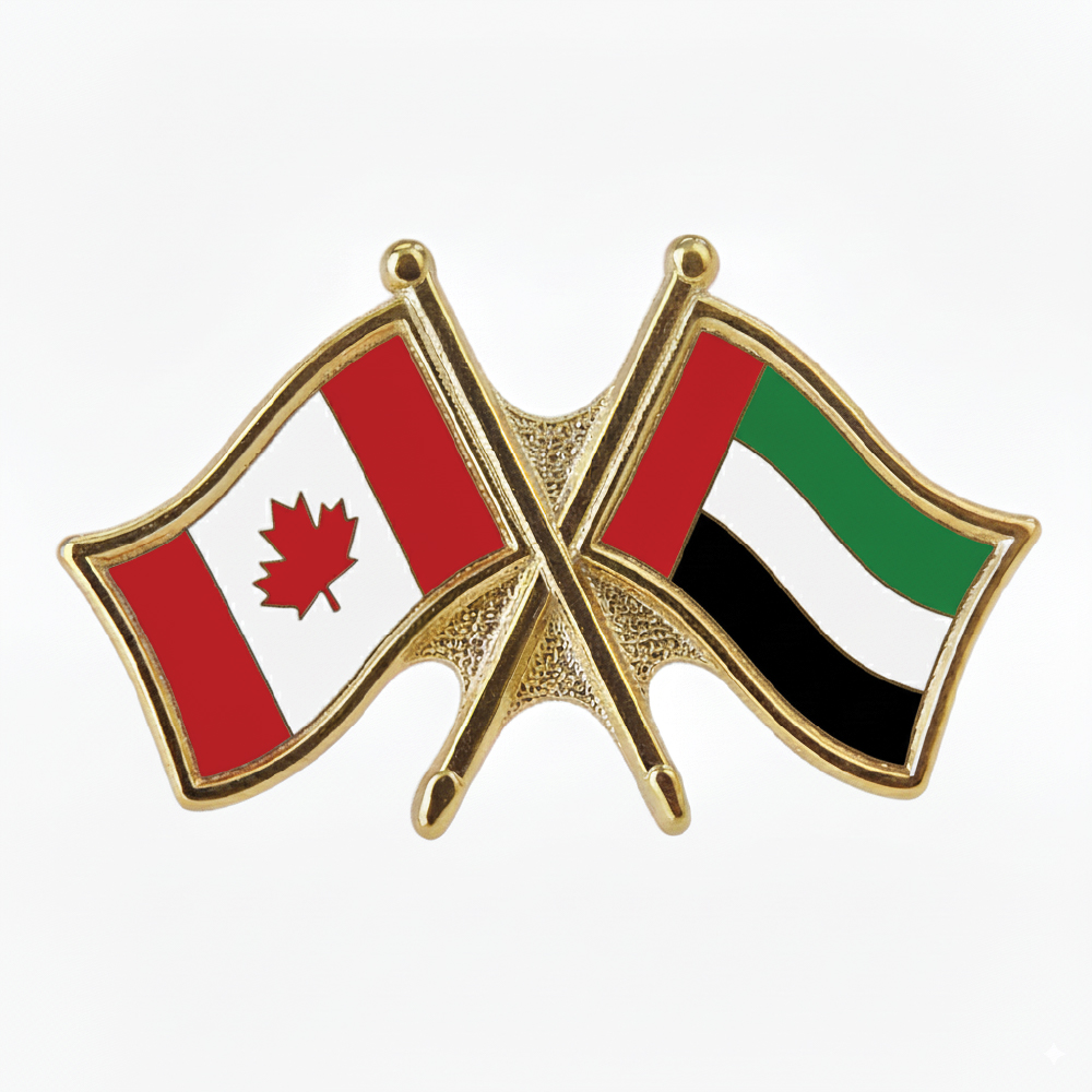Our Canada/ UAE crossed flag pins (also known as friendship pins) are high quality, with butterfly clasp.
