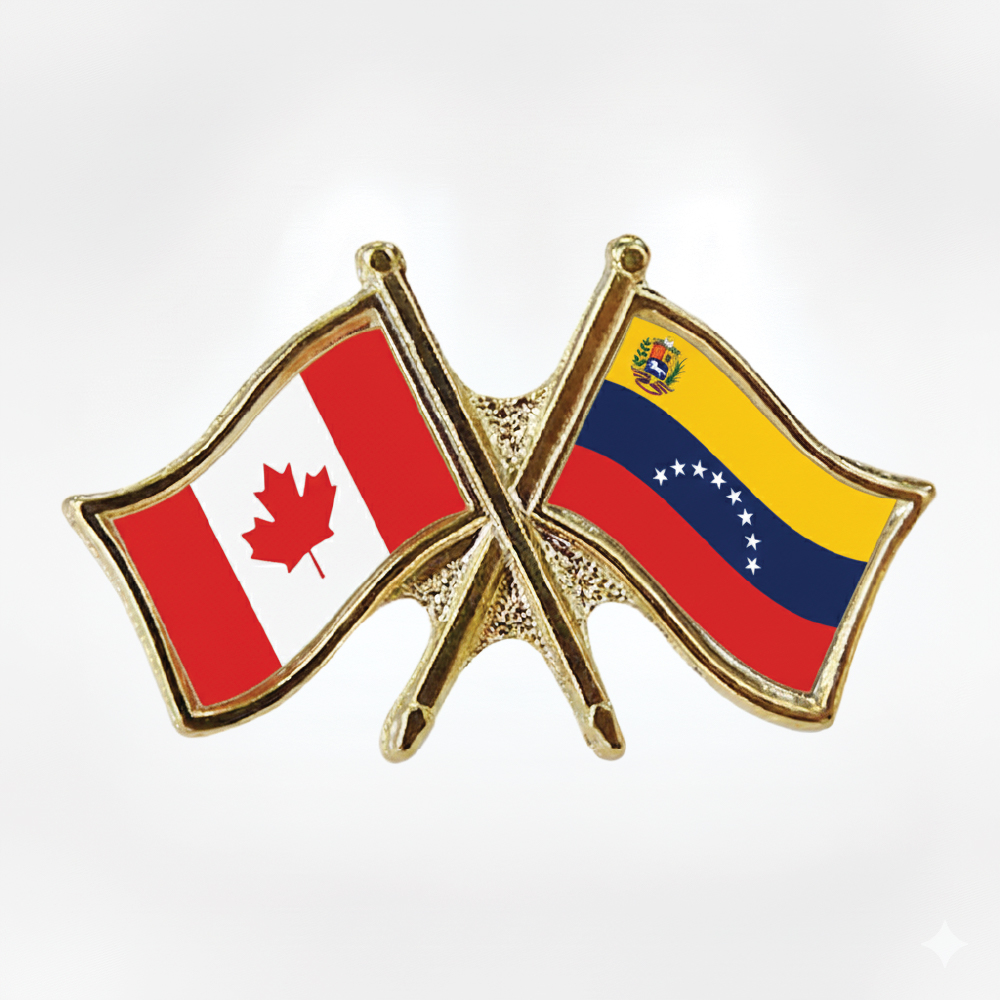 Our Canada / Venezuela crossed flag pins (also known as friendship pins) are high quality, with butterfly clasp.