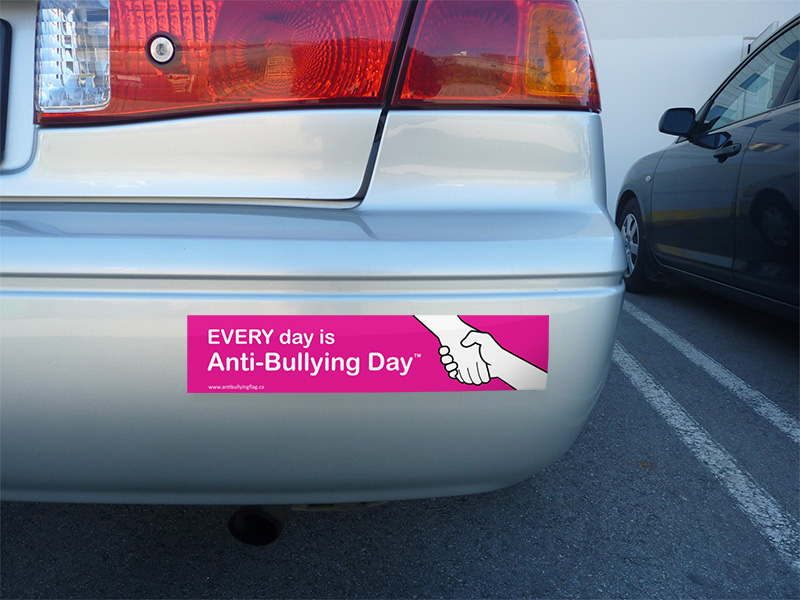 10.5″ x 2.25″ Anti-Bullying bumper stickers are printed on weather proof, matte white vinyl and made in Vancouver exclusively for The Flag Shop.