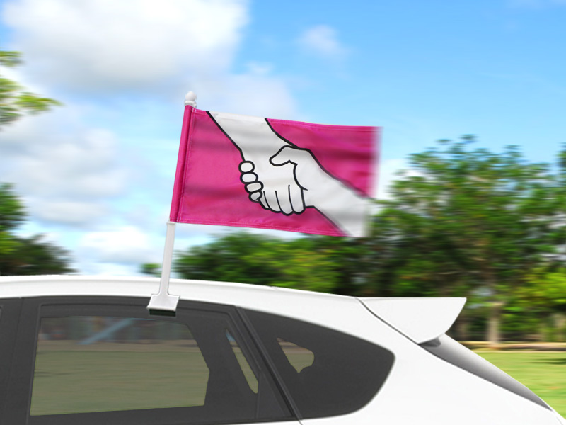 Our Anti-Bullying car flags are printed on knitted polyester, the ideal fabric for moving vehicles. The white window pole and clip are made of plastic, strong enough to be used on the highway. These car flags clip nicely onto most car windows.