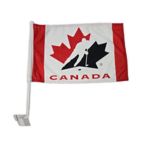 Take your Canadian pride on the road with this bold Hockey Canada Car Flag. Featuring the iconic maple leaf design and hockey silhouette, this flag is the perfect way to cheer on Team Canada wherever you drive.