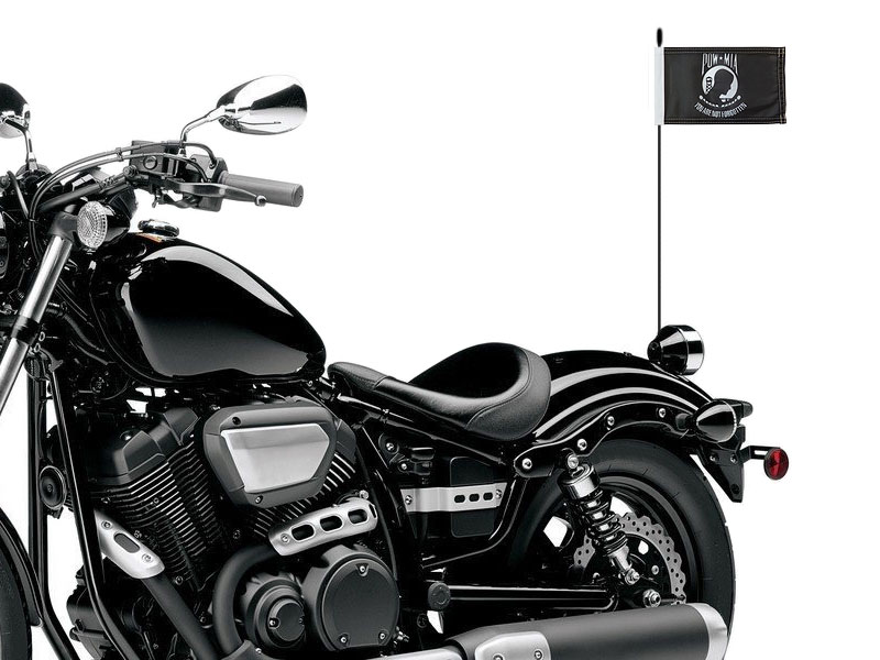 The 5″x8″ polyknit flag uses strong hook-and-loop fastening Velcro to keep it attached to the antenna of a motorcycle going highway speeds, also suitable for using on other moving vehicles.