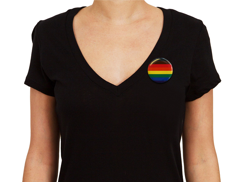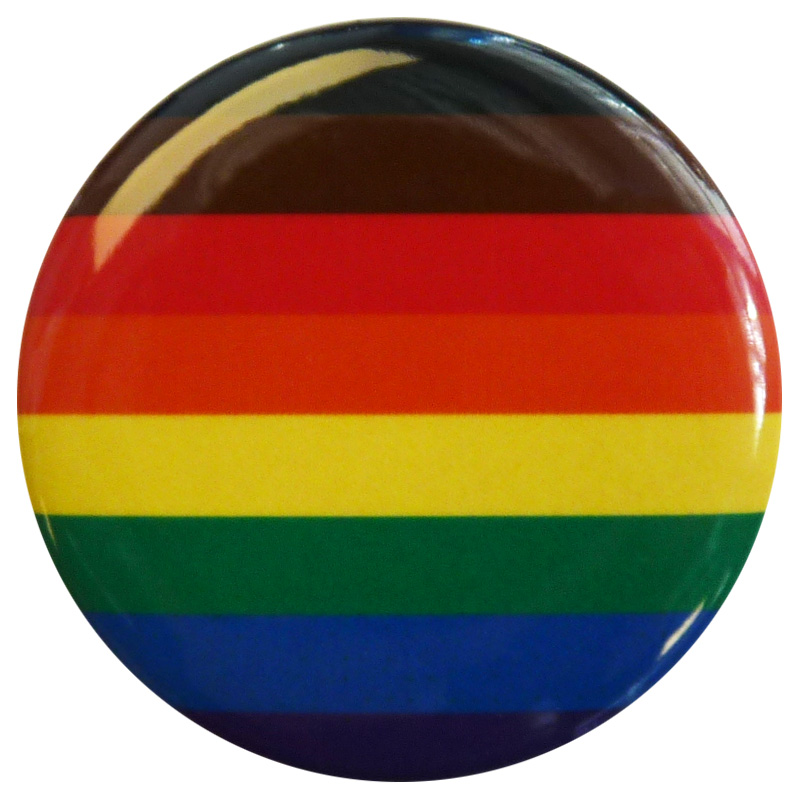 1.5″ digitally printed round Philly Pride buttons, laminated with safety pin backing.