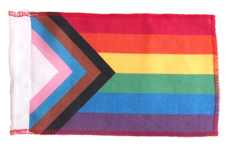 6″x9″ Inclusive Pride Aerial Flag is printed on polyknit and finished with a thick hook and loop sleeve for easy attaching to car or motorcycle flagpoles.
