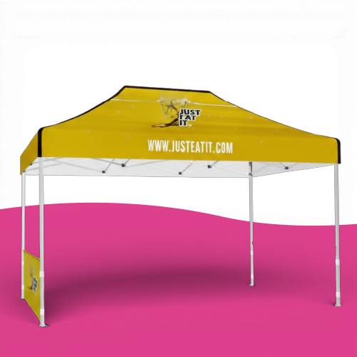 The canopy tent, also called marquee and gazebo, is a widely used promotional tool. Featuring large printing sizes and custom graphics, advertising tent canopies are the most effective way to make you stand out from the crowd, no matter used for indoor events or outdoor activities, like trade shows, parties, athletic events, or outdoor commercial events.