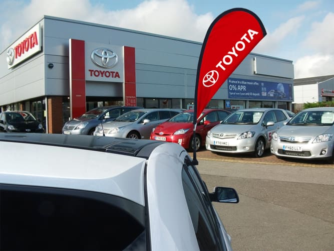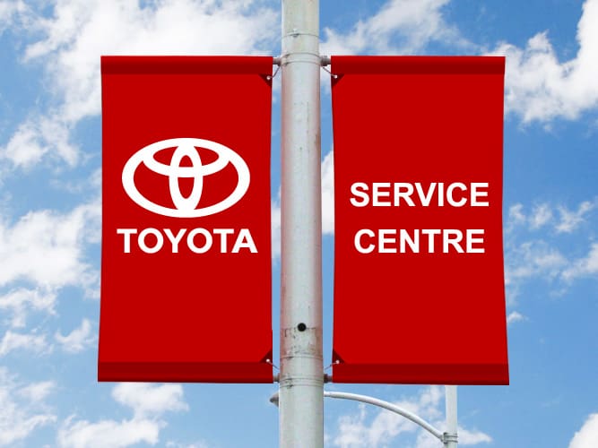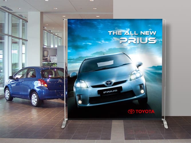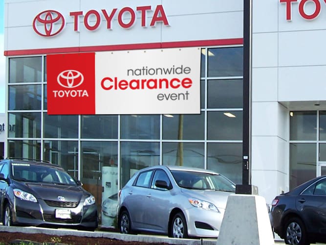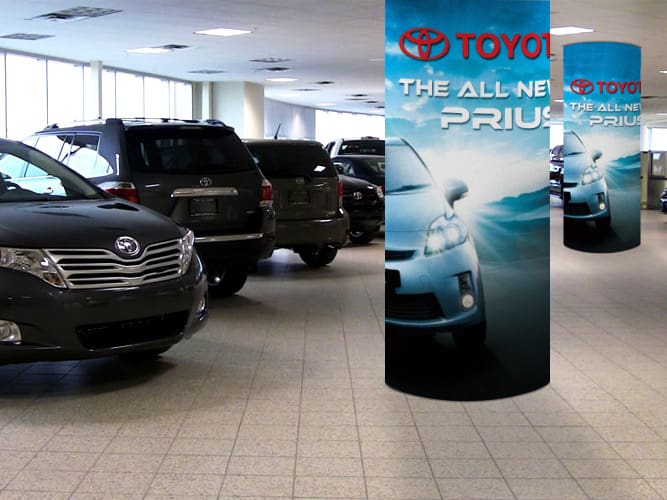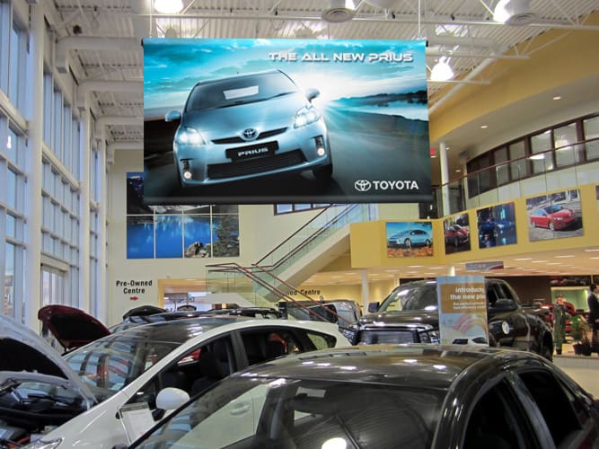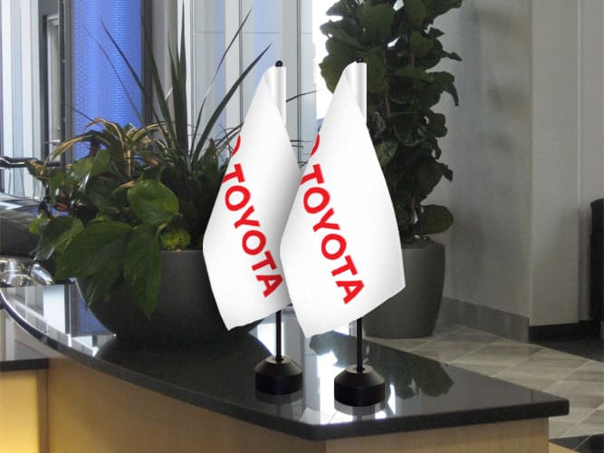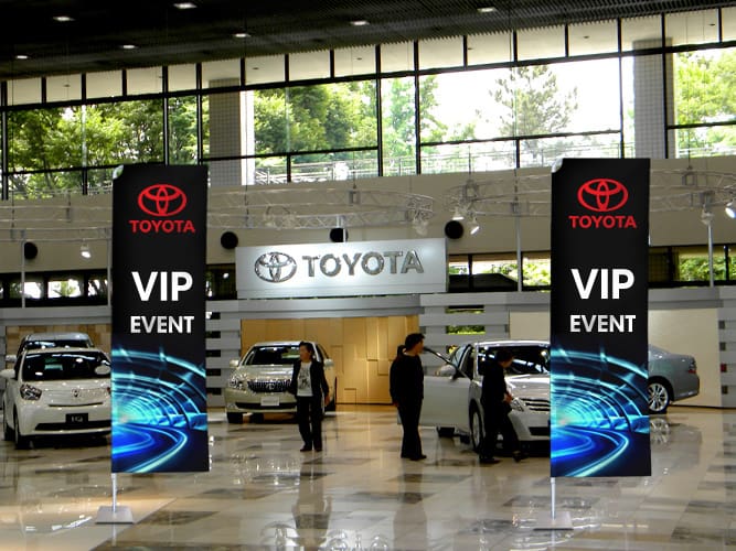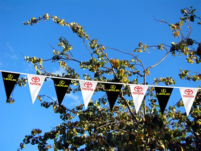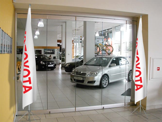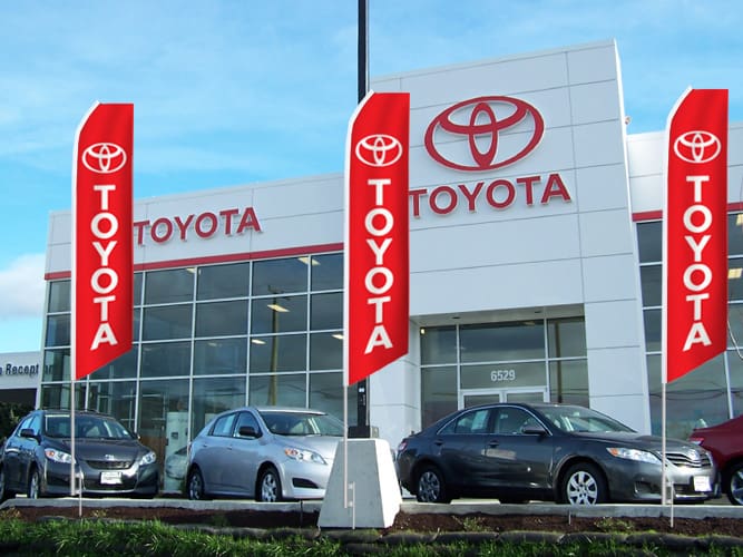 Branding and signage are part of the customer’s experience from the moment they spot your dealership from the road to rolling off the lot in a new car, so why not give your dealership a turbo boost with our premium products? The Flag Shop carries a wide range of products for both the indoors and outdoors. Mark your lot with parking lot banners and announce sales with grand format banners, feather flags, and pennant strings. Once inside, buyers can read up on the latest models on retractable banners or be drawn in with other eye-catching banners.
